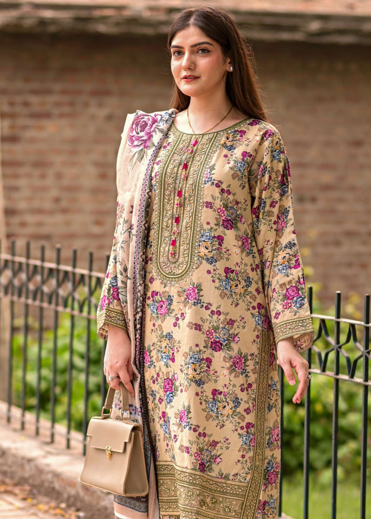 Our fabric is crafted from 100% pure cotton lawn, celebrated for its lightweight, breathable, and luxuriously soft nature. With its fine, smooth texture and graceful drape, this fabric offers effortless elegance while ensuring all-day comfort. Designed to keep you cool and fresh in warm weather, it blends timeless sophistication with natural ease, making it a perfect choice for both everyday wear and special occasions.