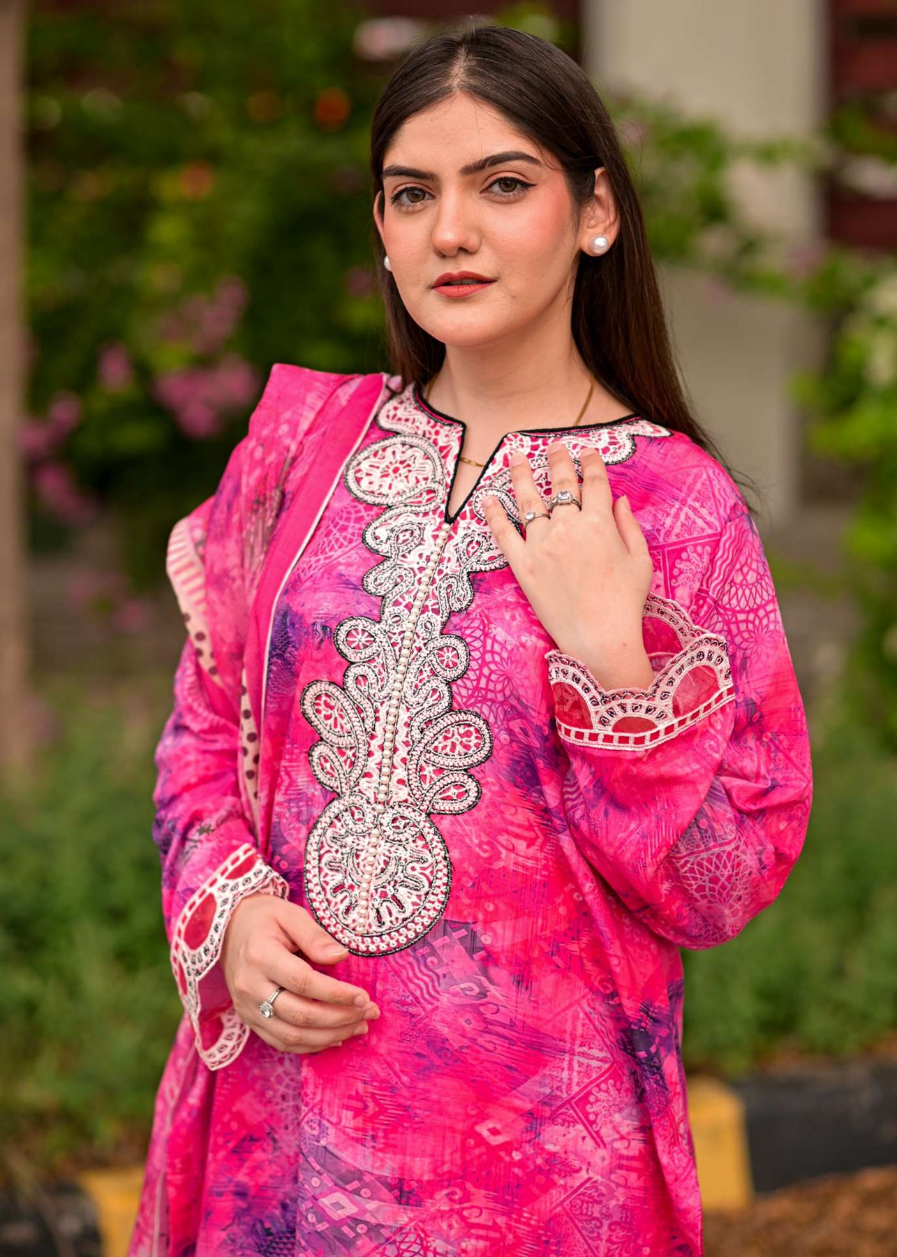 Refresh your summer wardrobe with our Serenity 3-Piece Suit, a beautifully designed ensemble crafted from premium cotton lawn. Rooted in traditional Pakistani elegance, this occasion-ready outfit blends timeless charm with modern sophistication. The soft pastel peach hue brings a breezy vibrance, while the lightweight, breathable fabric ensures all-day comfort.