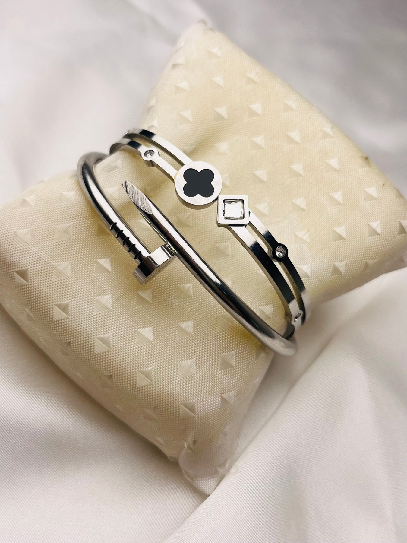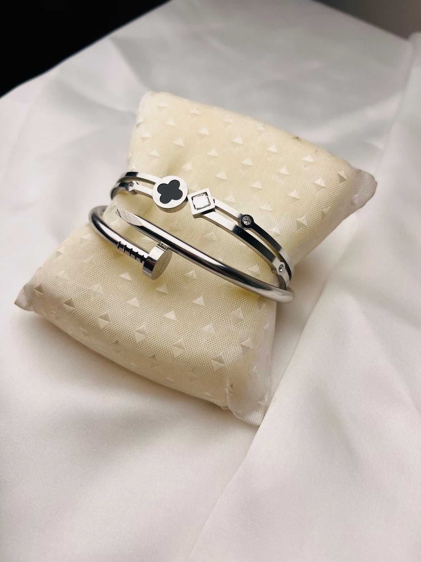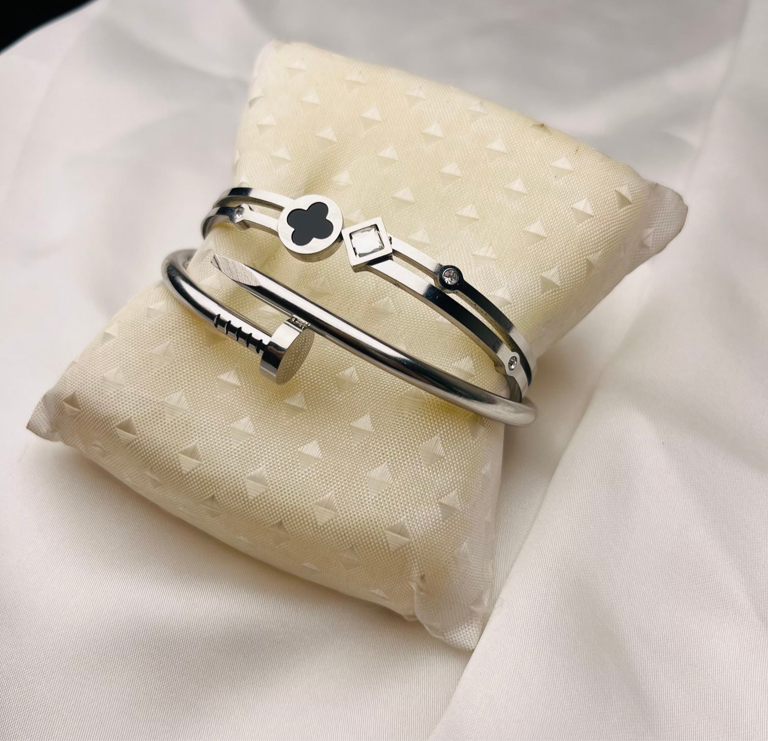 Nail- Bangle – Featuring a bold, sculptural design that mimics a bent nail, this bracelet is a statement piece with a sleek, polished finish.