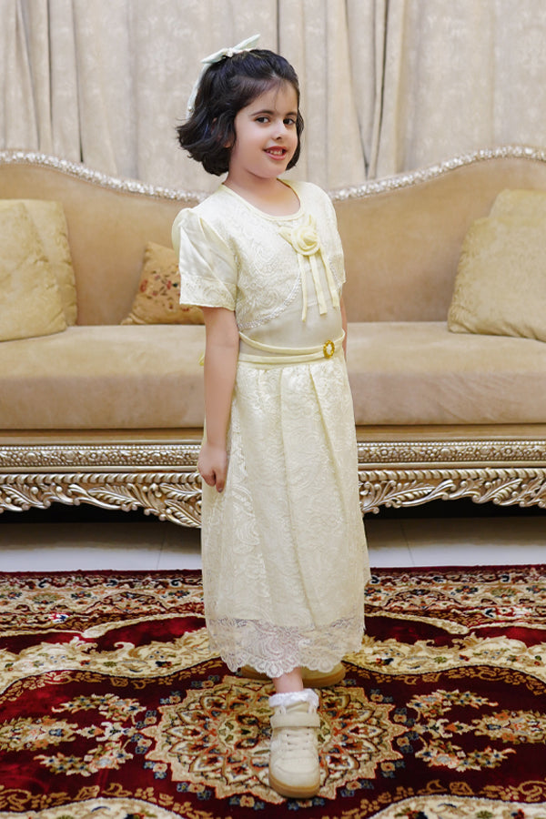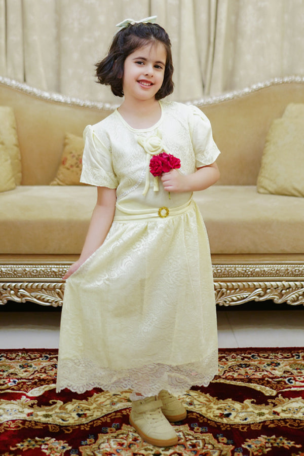 Give your little one a touch of elegance with our Serenity Frock – a beautifully designed single-piece outfit made especially for girls. Crafted from fancy net embroidered fabric, this frock blends intricate detailing with playful charm, making it perfect for festive occasions, family gatherings, or special celebrations.